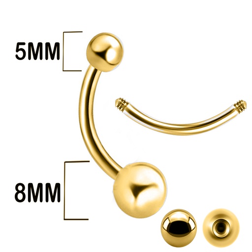 Steel 316L Gold Ti-PVD Coated Bananabell without Screwballs - 18GA(1.0mm)