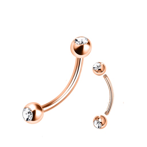 Steel 316L Rose Gold Ti-PVD Coated Bananabell with Double Crystal (5+8mm) - Special Sizes