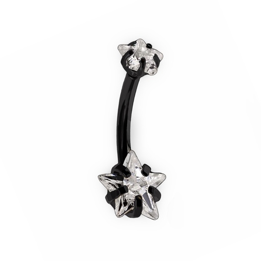 Steel 316L Black Ti-PVD Coated Eyebrow Bananabell in 3 Stars with Crystal Design