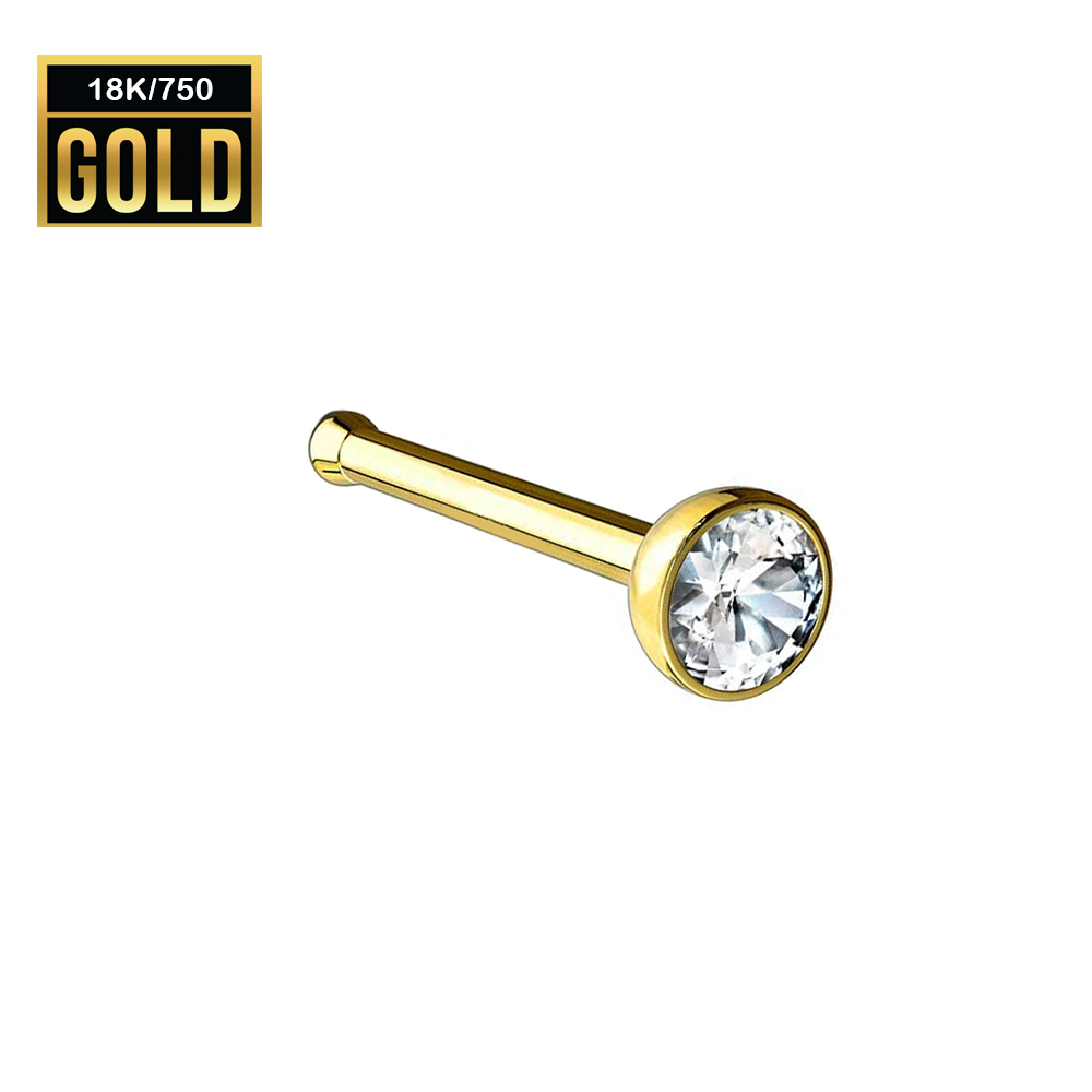18K Real Gold Nose Stud with Zirconia Crystal - 23GA(0.6mm)